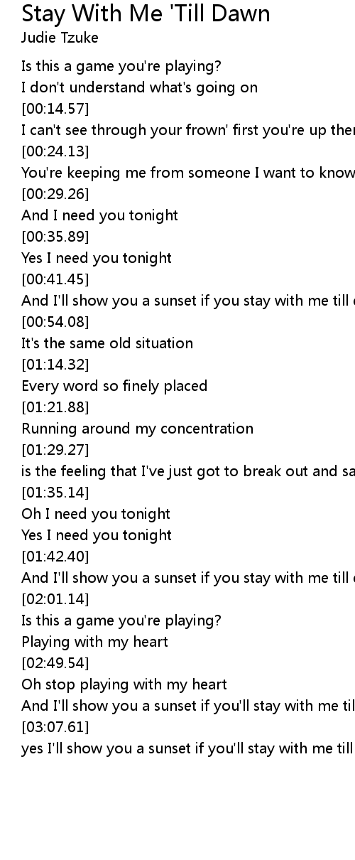 And I'll show you a sunset if you'll stay with me till dawn. |
