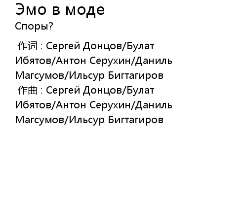 | [00:00.000] | 作词 : Сергей Донцов/Булат Ибятов/Антон Серухин/Даниль Магсумов/Ильсур Бигтагиров |