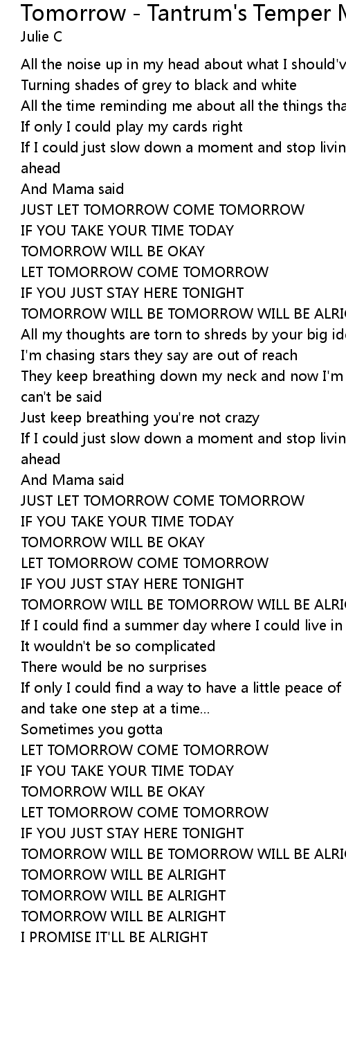 TOMORROW WILL BE TOMORROW WILL BE ALRIGHT |