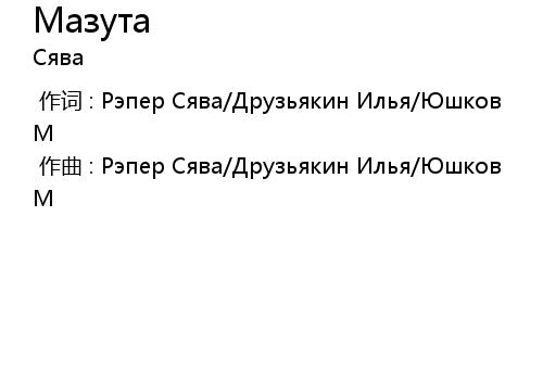 作词 : Рэпер Сява/Друзьякин Илья/Юшков М