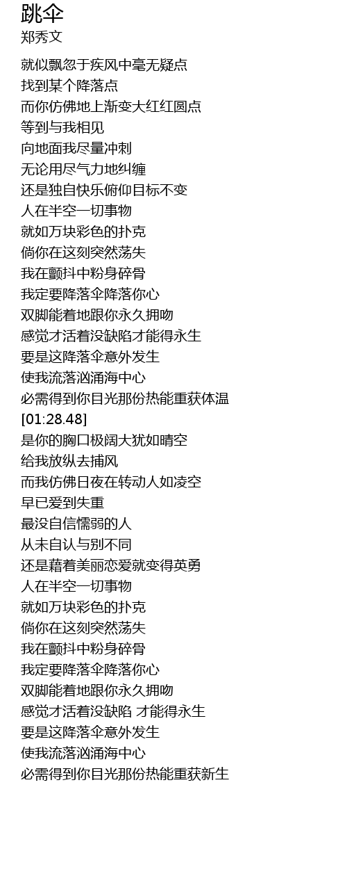 | [00:58.72] | 我定要降落伞降落你心 |