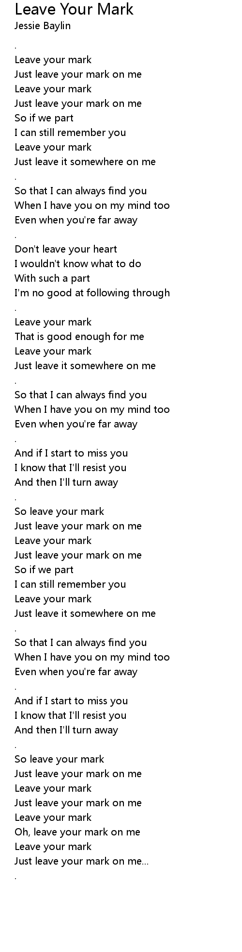 Just leave your mark on me |