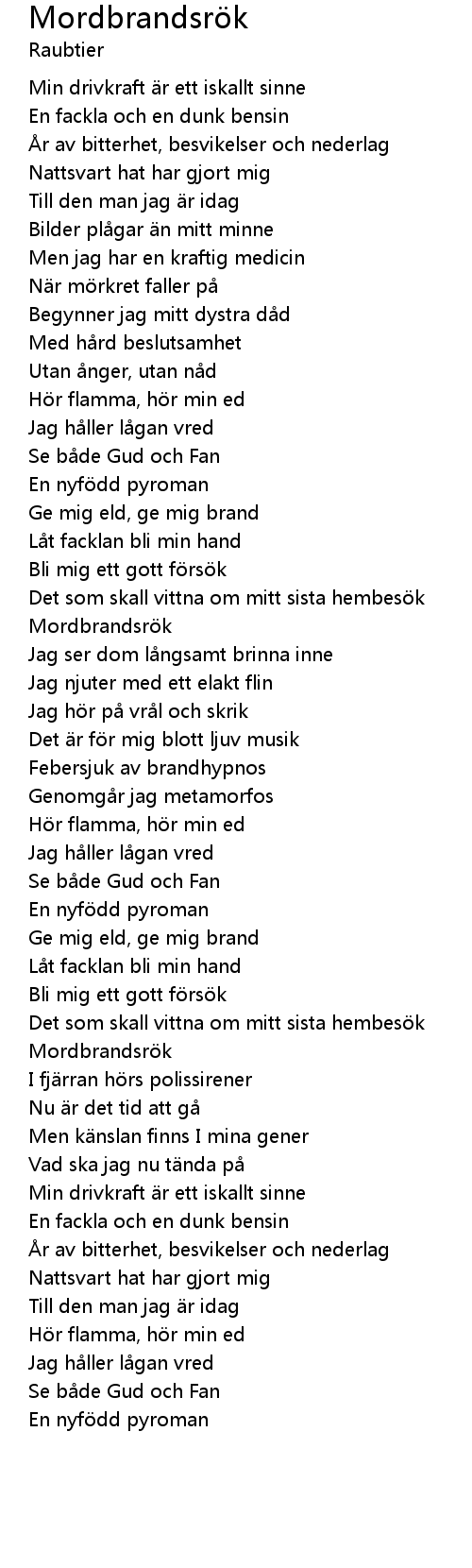 | Song | Mordbrandsrök |