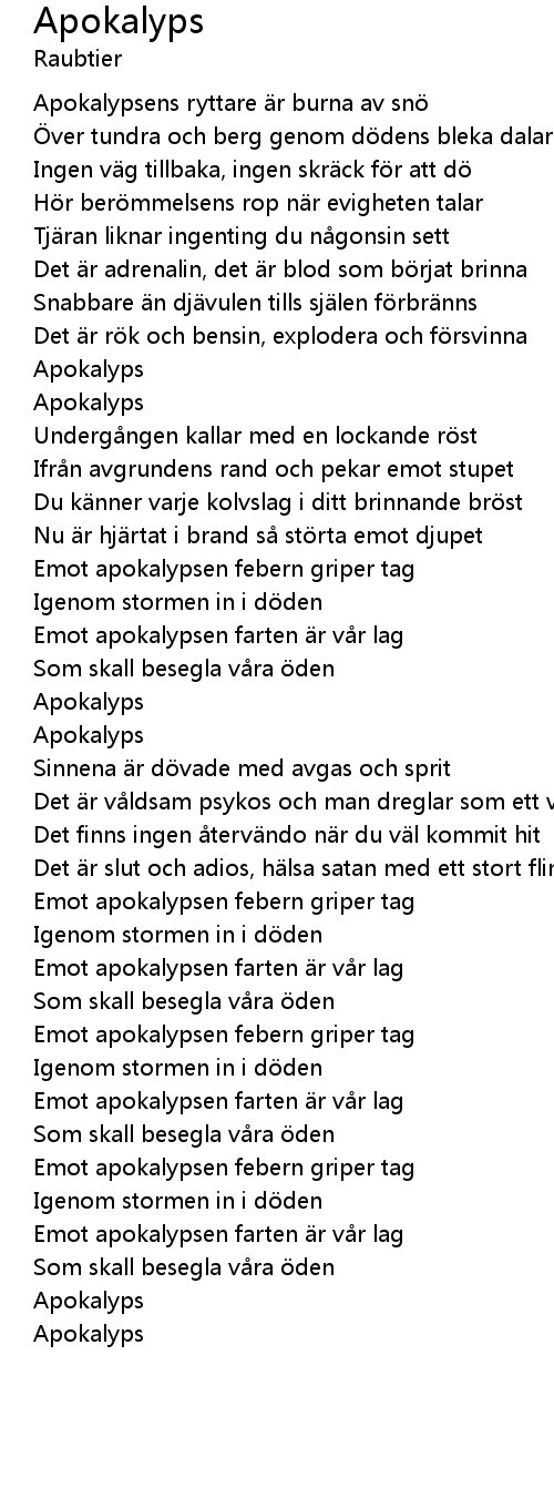 | Emot apokalypsen farten r v r lag | |