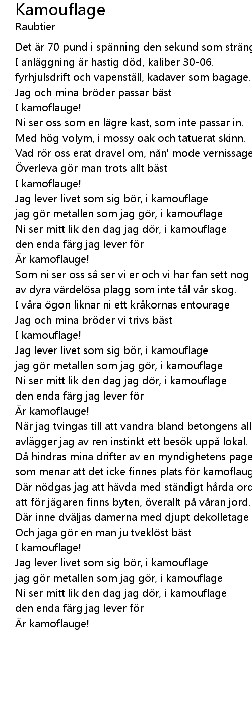 | jag gör metallen som jag gör, i kamouflage | |