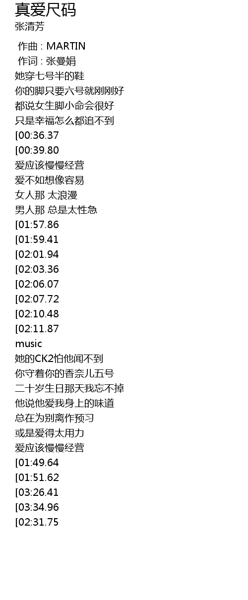 | [03:42.54][03:26.41][02:16.10] | 真爱的尺码别太在意 |