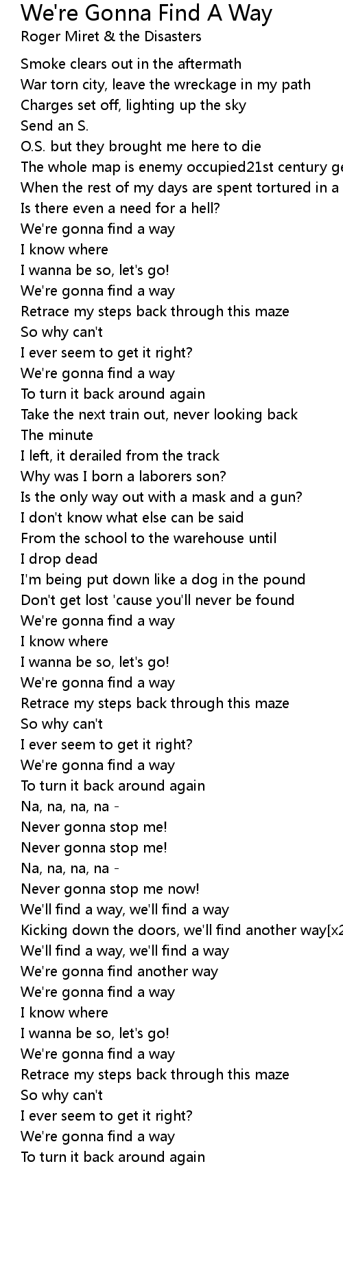 We'll find a way, we'll find a way |