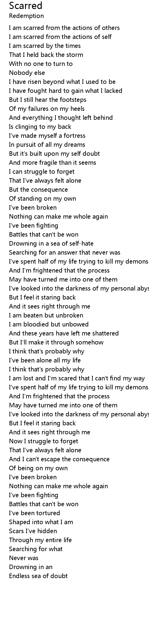 I am scarred from the actions of self |