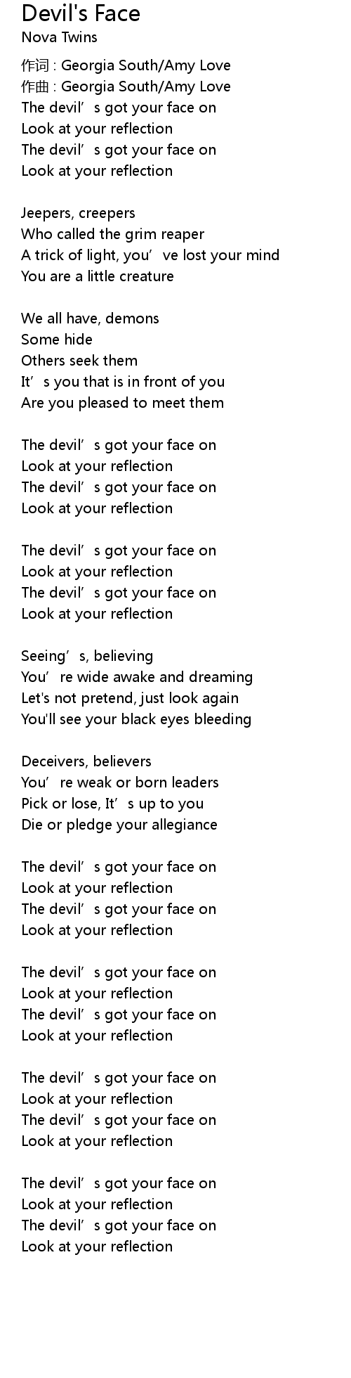 | Song | Devil's Face |