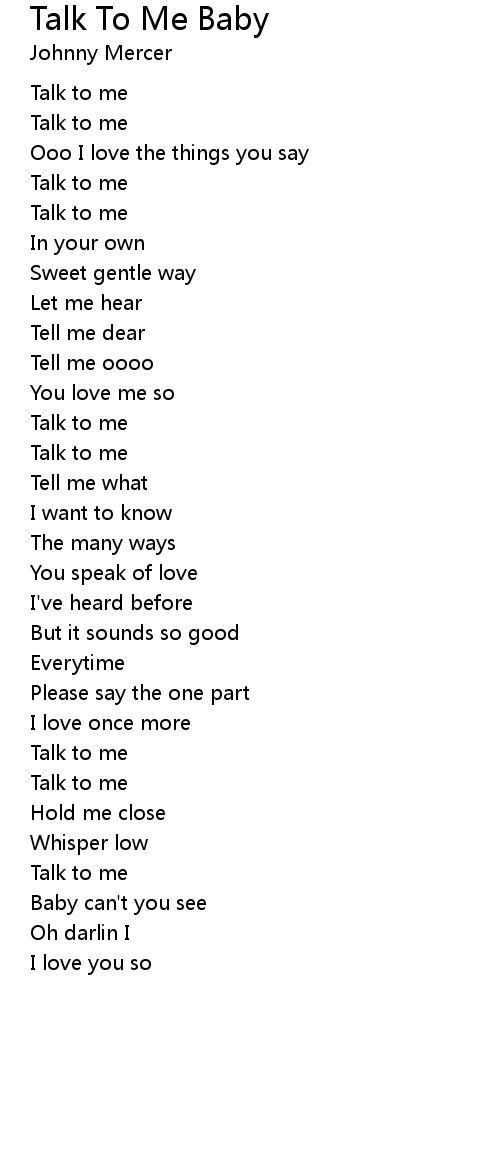 | Song | Talk To Me Baby |