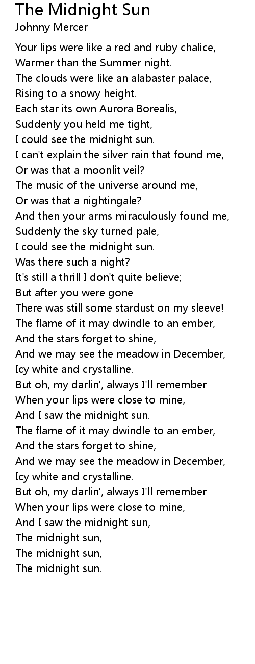 And I saw the midnight sun, |