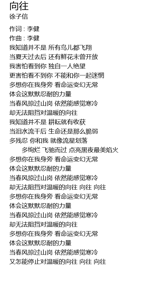| 又怎能停止对温暖的向往 向往 向往 |