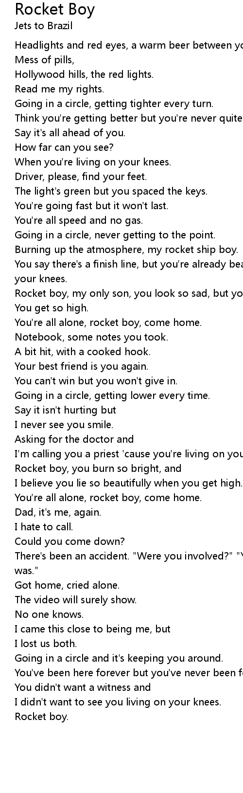 Rocket boy, my only son, you look so sad, but you're so young. |