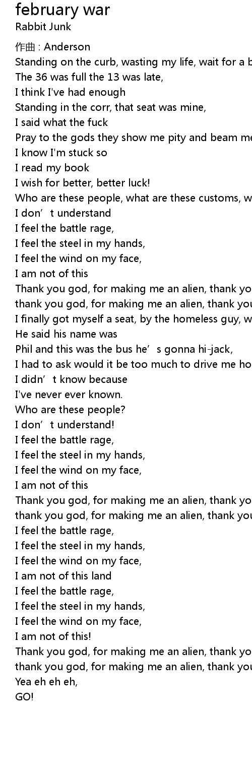 | Thank you god, for making me an alien, thank you god, for making me alright, thank you god, for making me an alien, thank you god, for making me alright | |