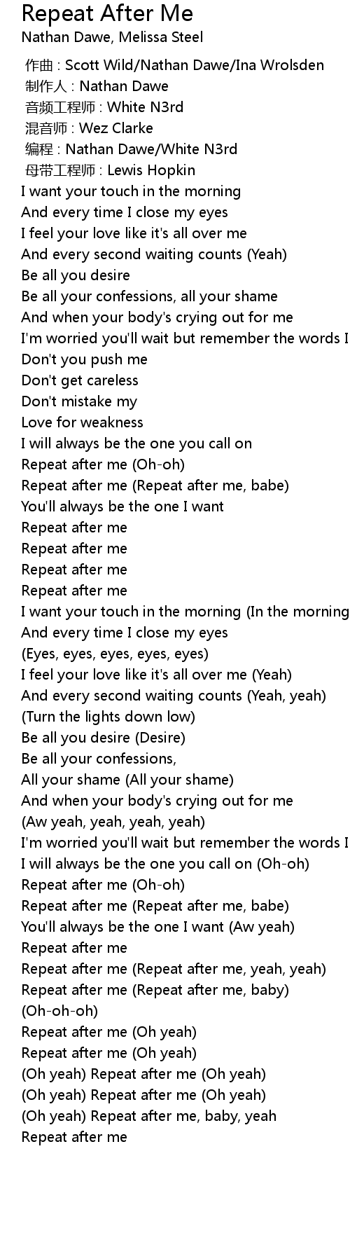 | [00:59.53] | Repeat after me Repeat after me, babe |