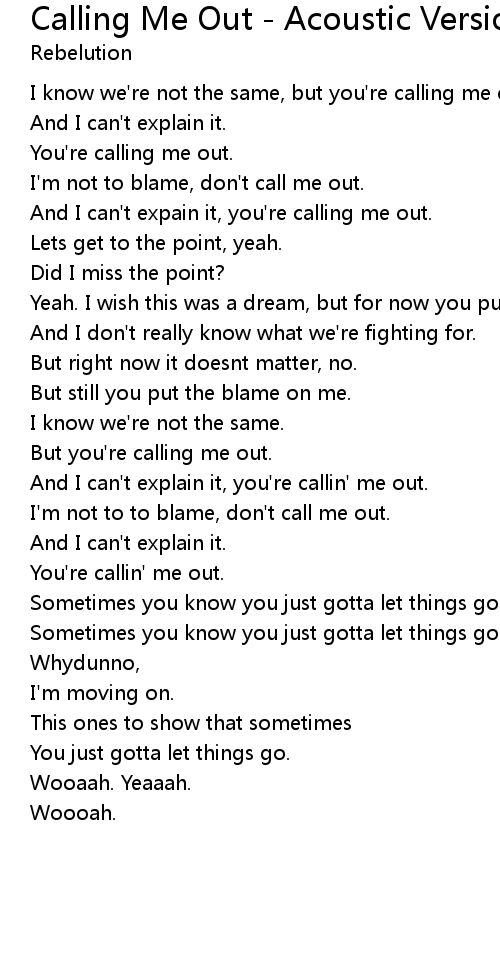 Calling Me Out - Acoustic Version Lyrics
