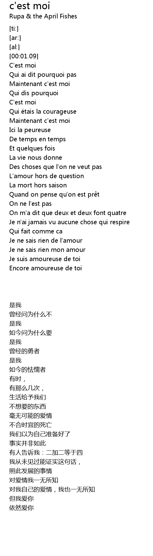| [00:08.40] | Qui ai dit pourquoi pas |