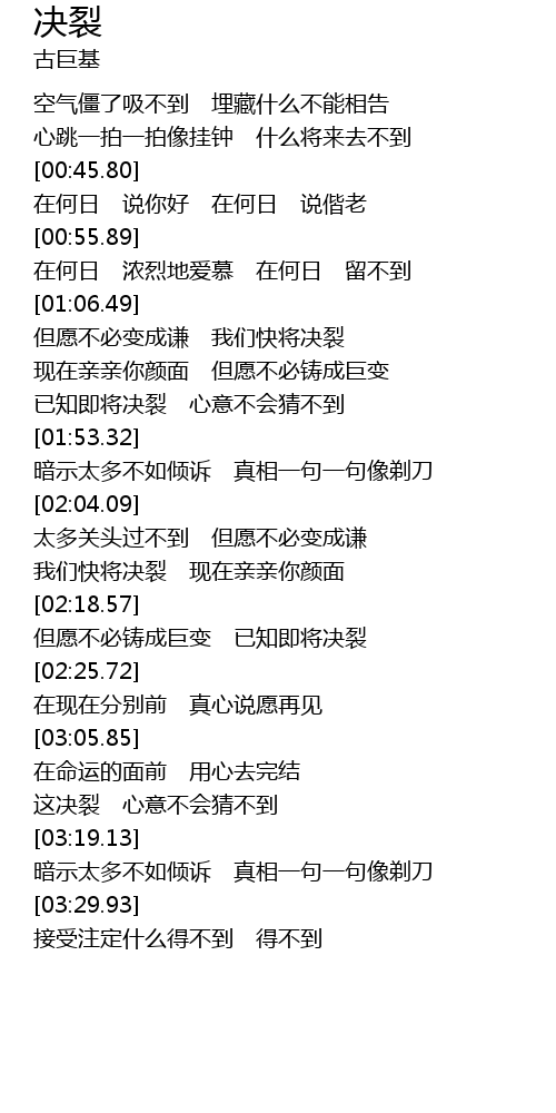 | [01:20.53] | 已知即将决裂 心意不会猜不到 |