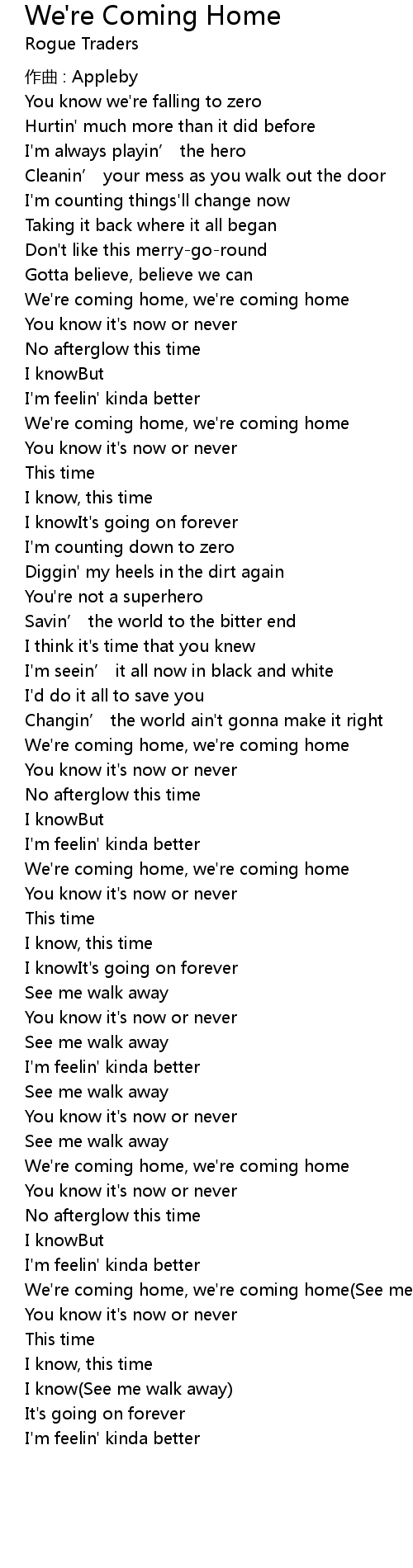 | We're coming home, we're coming home(See me walk away) | |