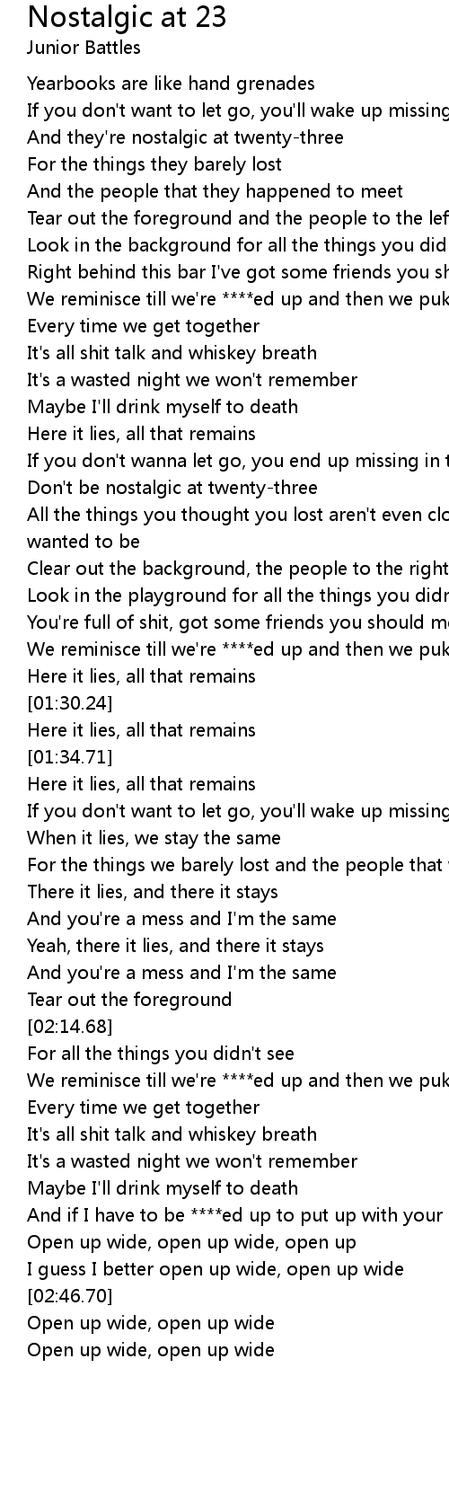 And they're nostalgic at twenty-three |