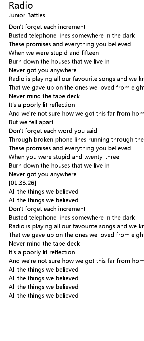 Radio is playing all our favourite songs and we know |