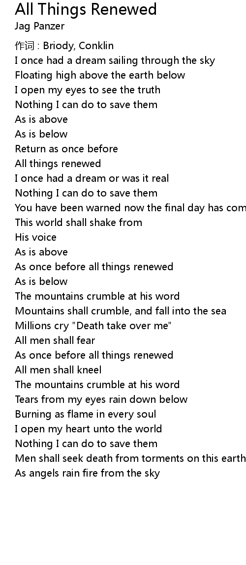 | Song | All Things Renewed |