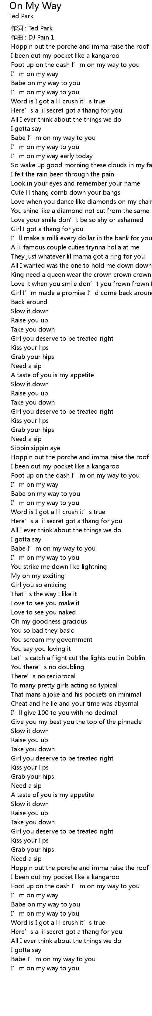 | [02:07.400] | Foot up on the dash I' m on my way to you |
