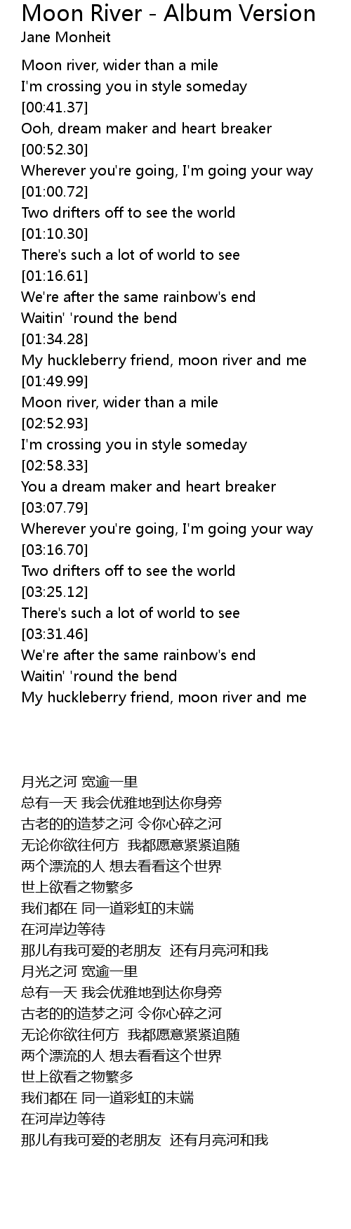 Moon river, wider than a mile |