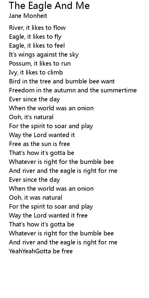 And river and the eagle is right for me |