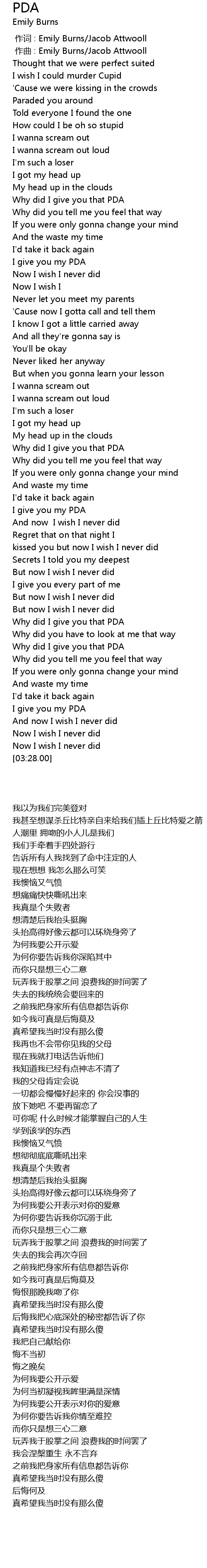 | [00:43.84] | Why did I give you that PDA |