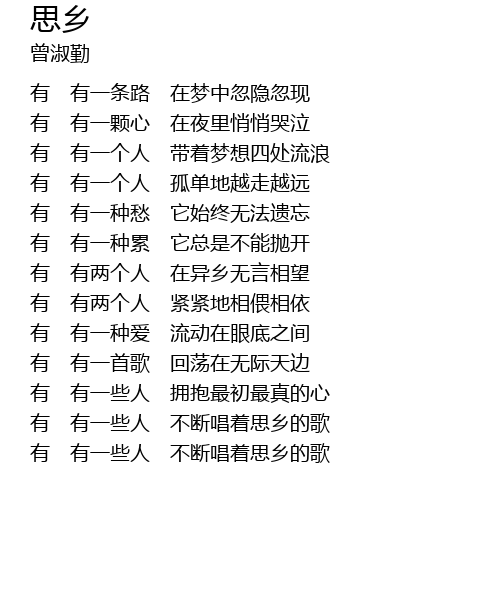 | [03:01.32] | 有 有一些人 不断唱着思乡的歌 |
