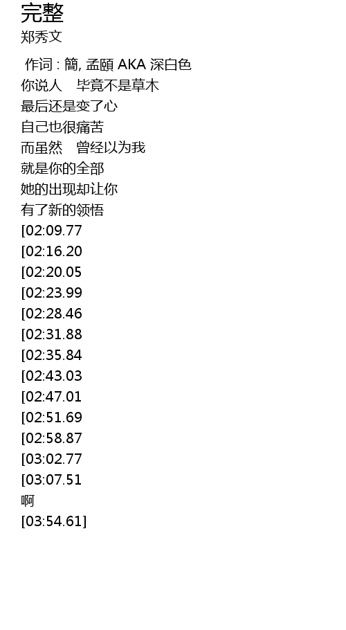 | [01:04.02][02:43.03][03:18.76] | 你们的幸福很完整 |