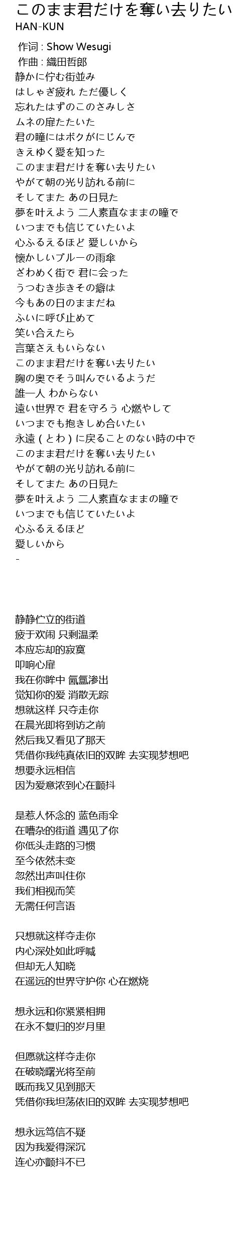| [03:24.06] | このまま君だけを奪い去りたい |