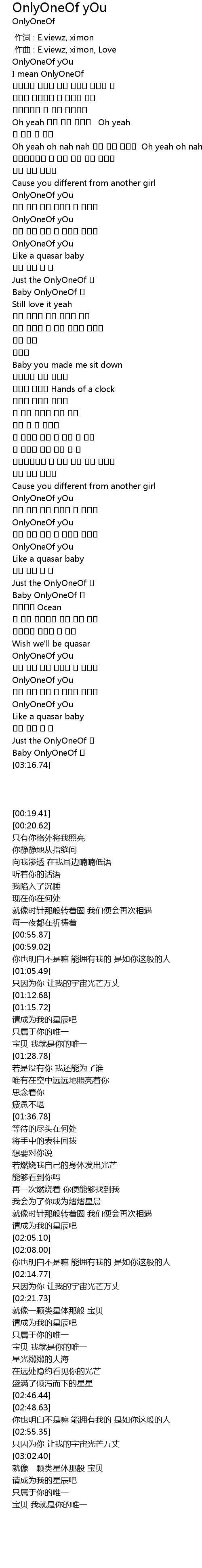 | [02:31.55] | Baby OnlyOneOf 너 |