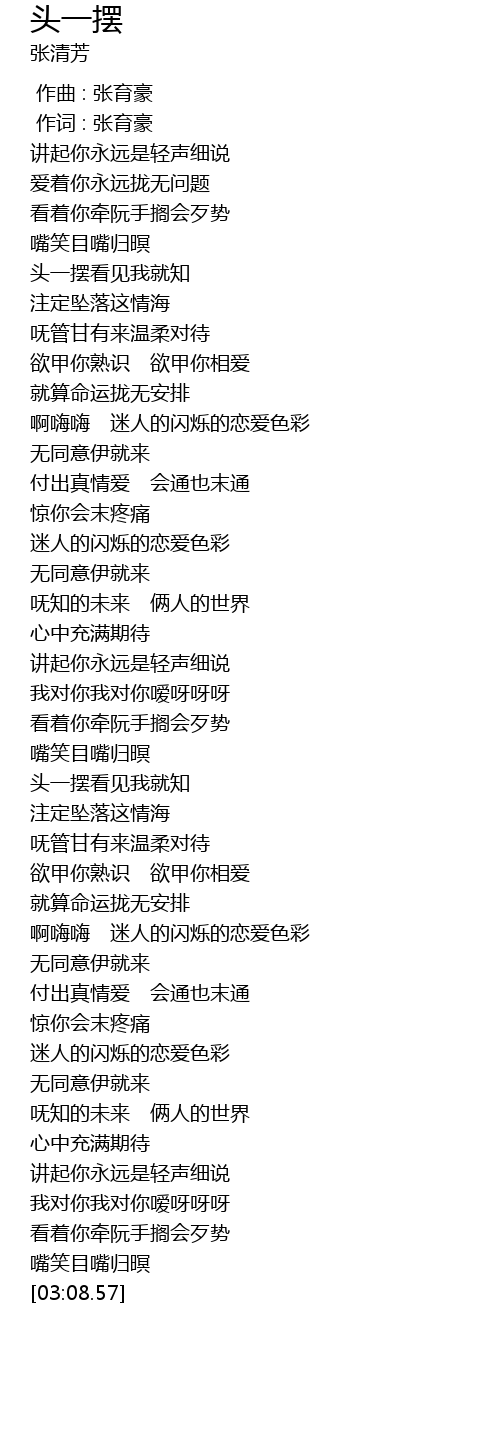 | [00:00.00] | 作曲 : 张育豪 |