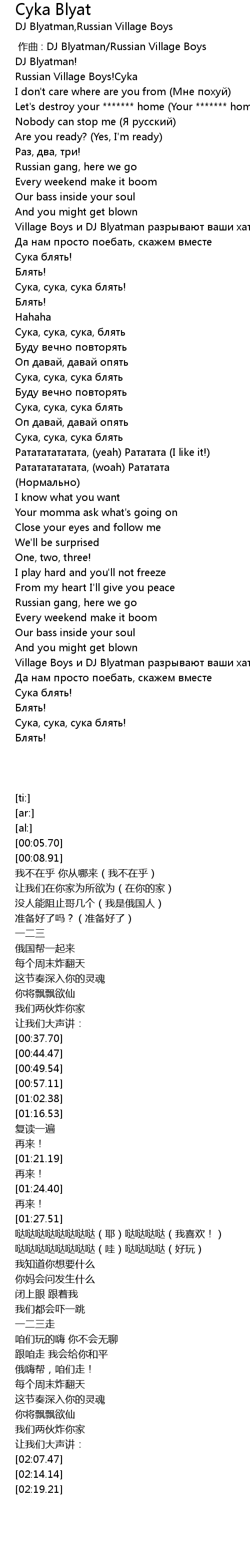 | [00:00.000] | zuo qu : DJ Blyatman Russian Village Boys |