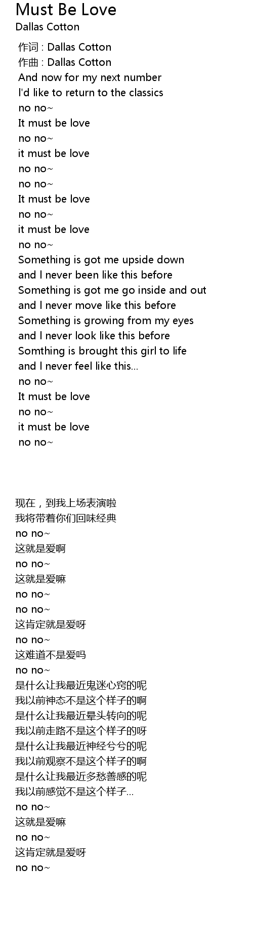 | [00:00.000] | 作词 : Dallas Cotton |