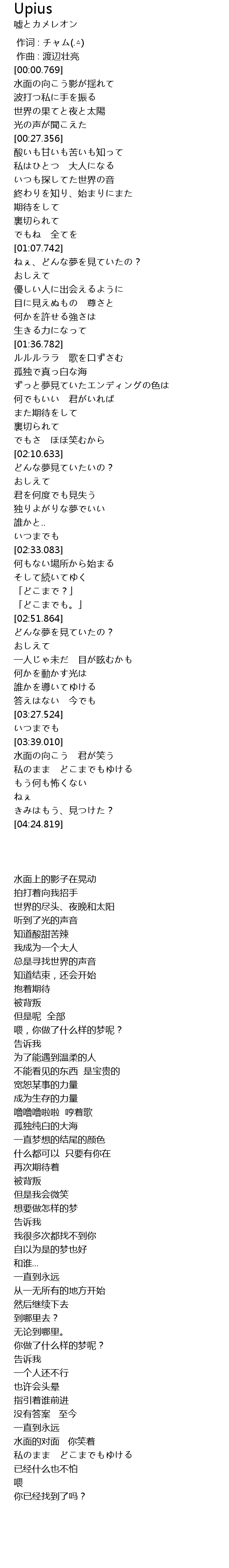 | [03:56.554] | 水面の向こう 君が笑う |