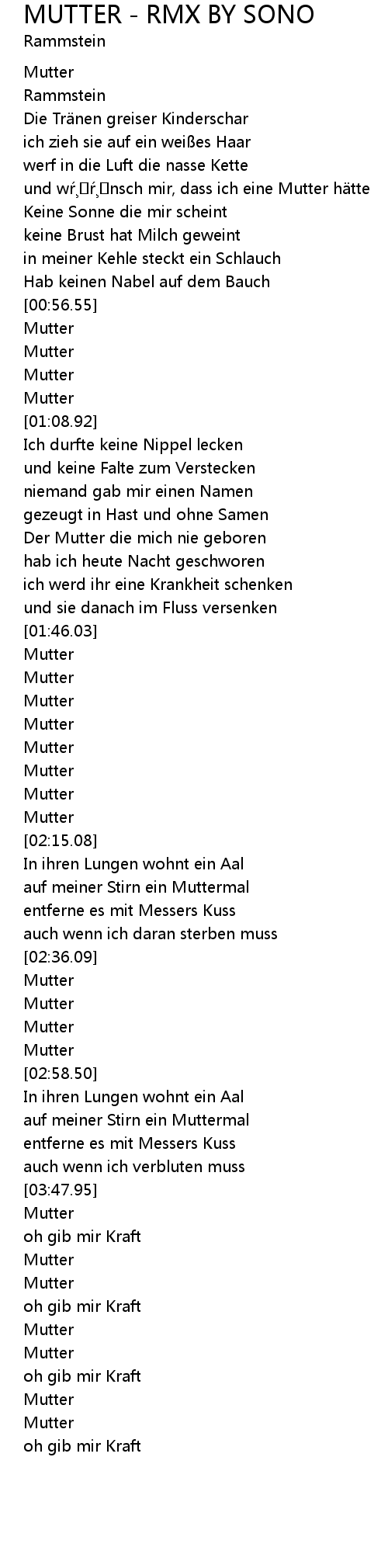 | [00:36.10] | und wŕ¸ŕ¸nsch mir, dass ich eine Mutter hätte |