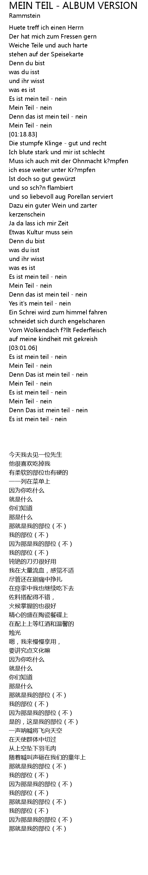 | [01:02.83] | Mein Teil - nein |