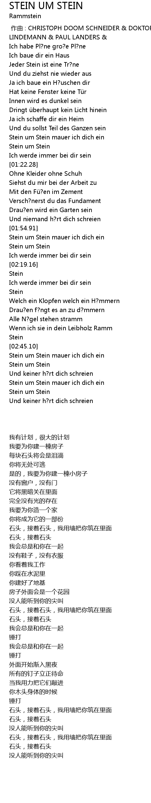 | [02:46.29] | Stein um Stein mauer ich dich ein |