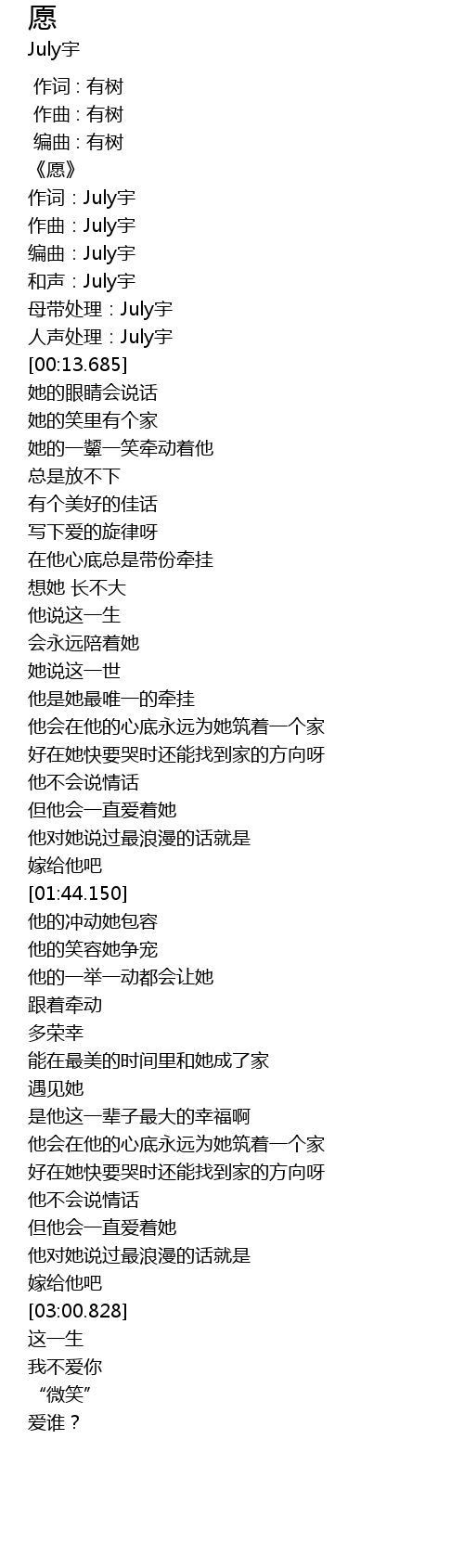 | [00:05.916] | 作曲:July宇 |