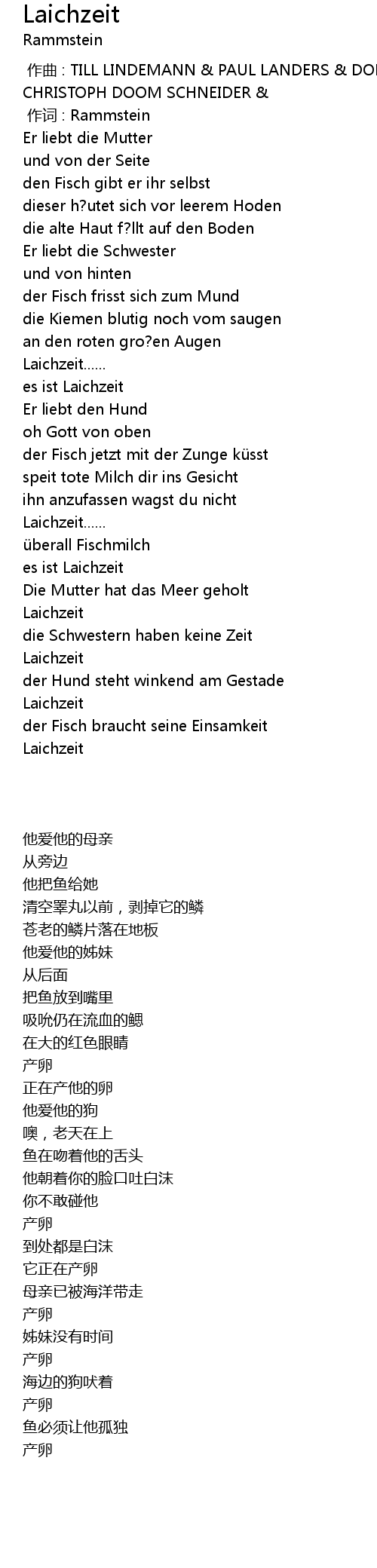 | [00:00.00] | 作曲 : TILL LINDEMANN & PAUL LANDERS & DOKTOR CHRISTIAN LORENZ & CHRISTOPH DOOM SCHNEIDER & |