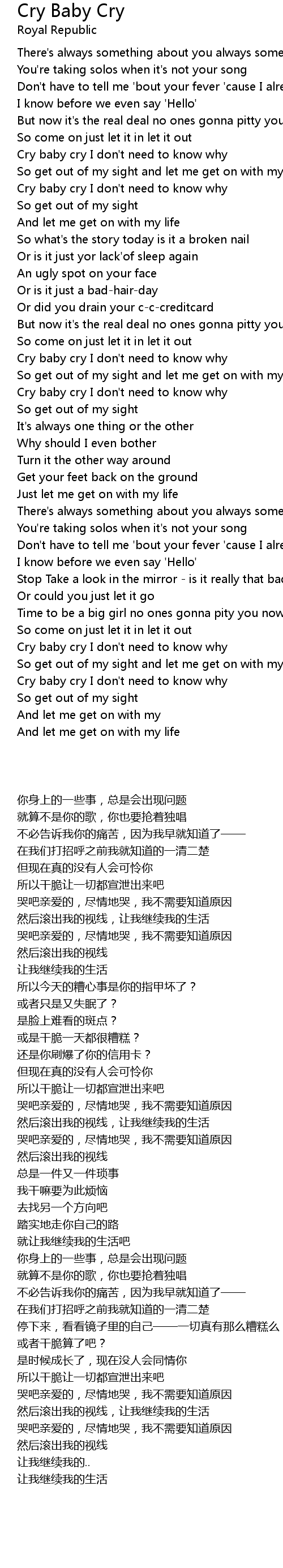 Cry baby cry I don't need to know why |