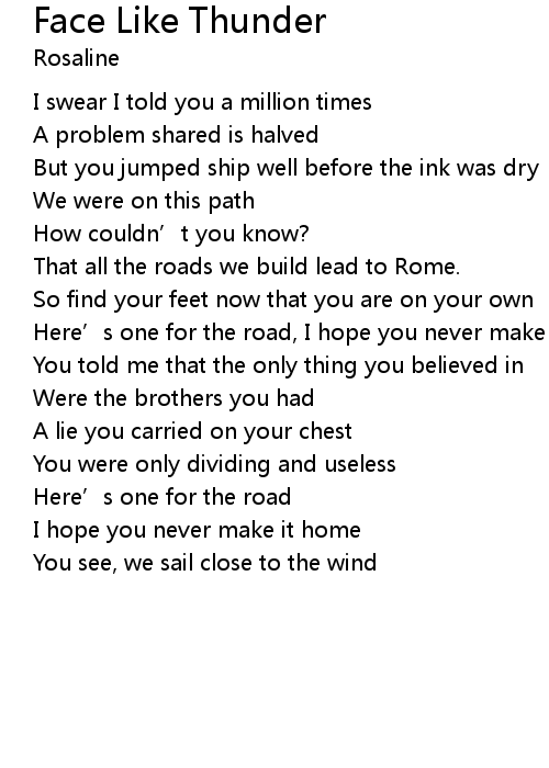 | Song | Face Like Thunder |