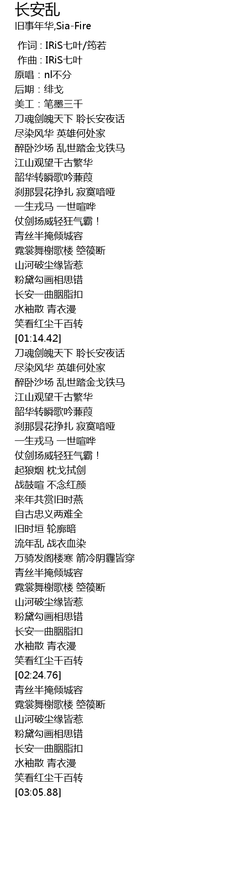 | [01:53.04] | 流年乱 战衣血染 |
