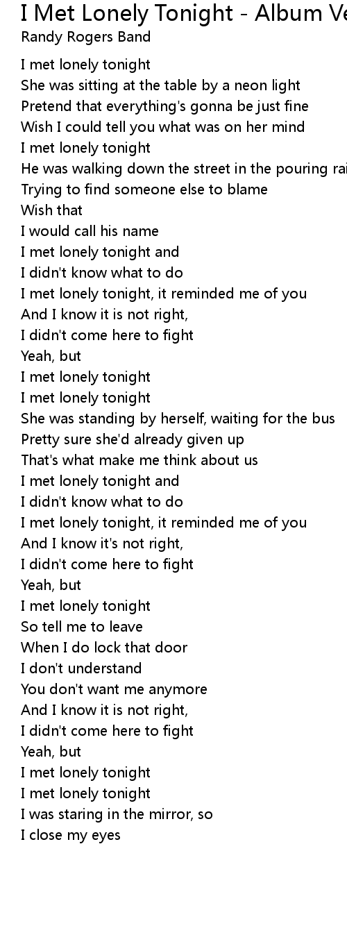 I met lonely tonight and |