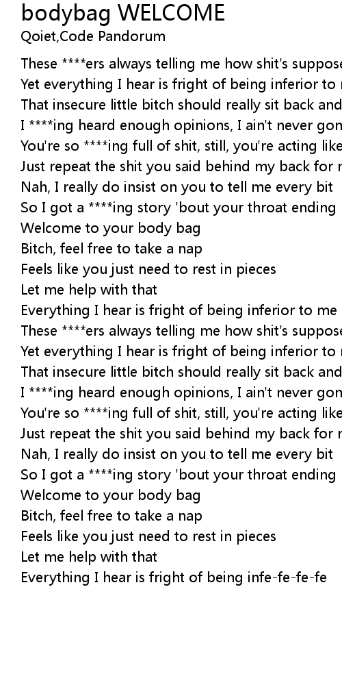 | [00:38.199] | Welcome to your body bag |