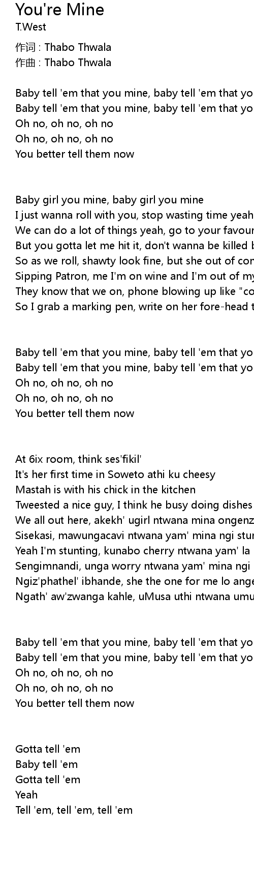 | Baby tell ' em that you mine, baby tell ' em that you mine oh no | |