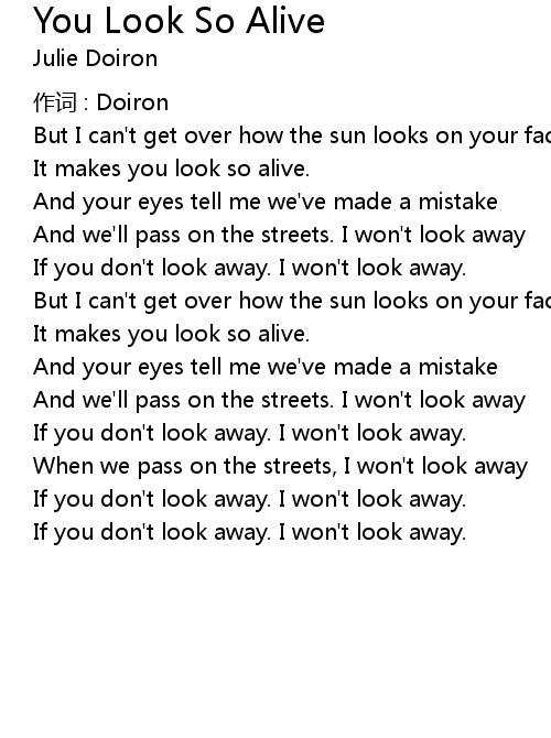 | Song | You Look So Alive |